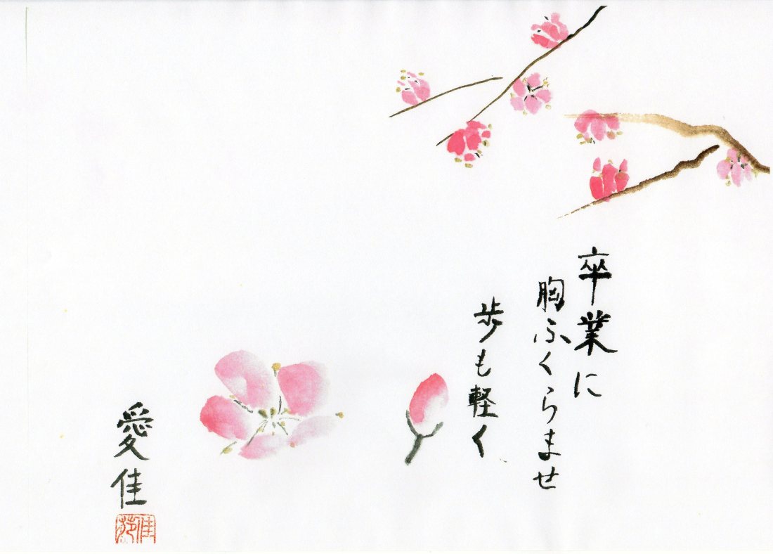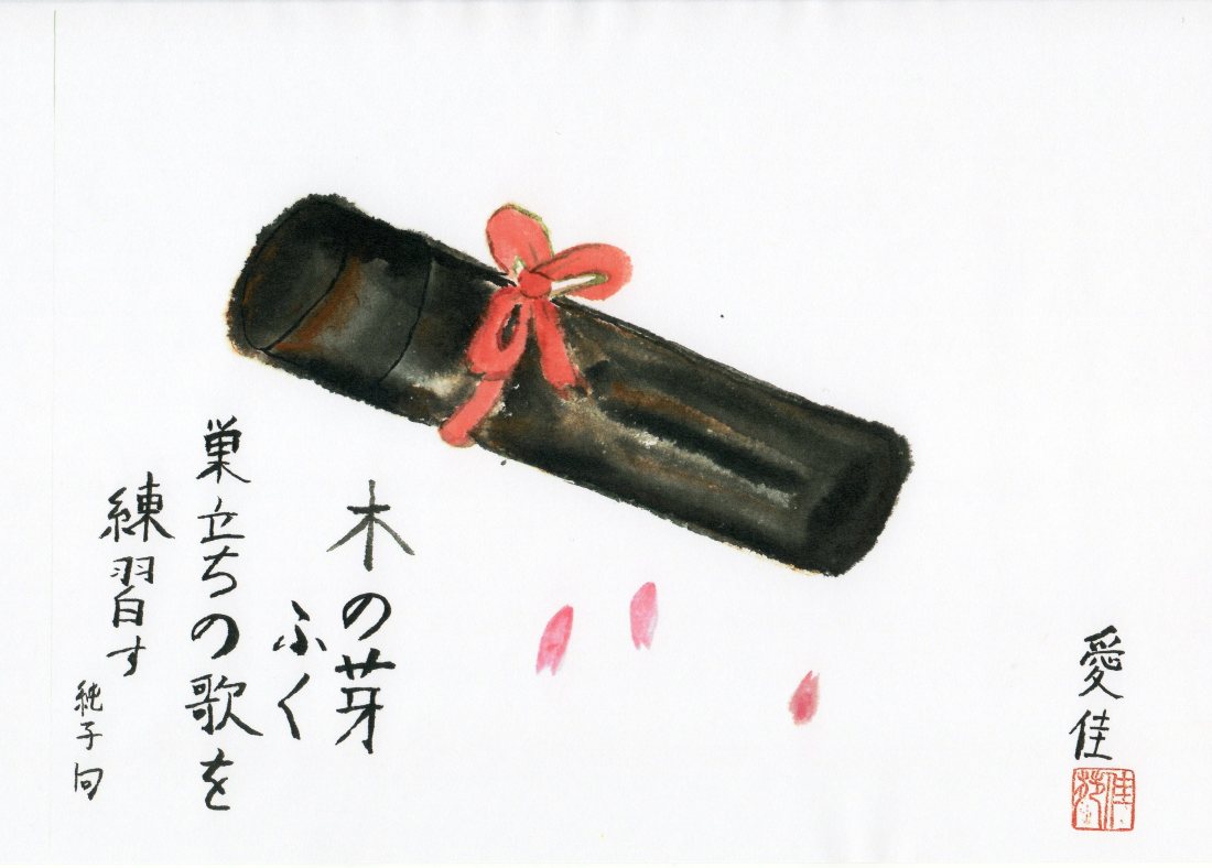 Miss Masuda Aika(桝田愛佳), is now a freshman at Seirei Senior High School in Akita, and contributed her haiga to our website again recently.