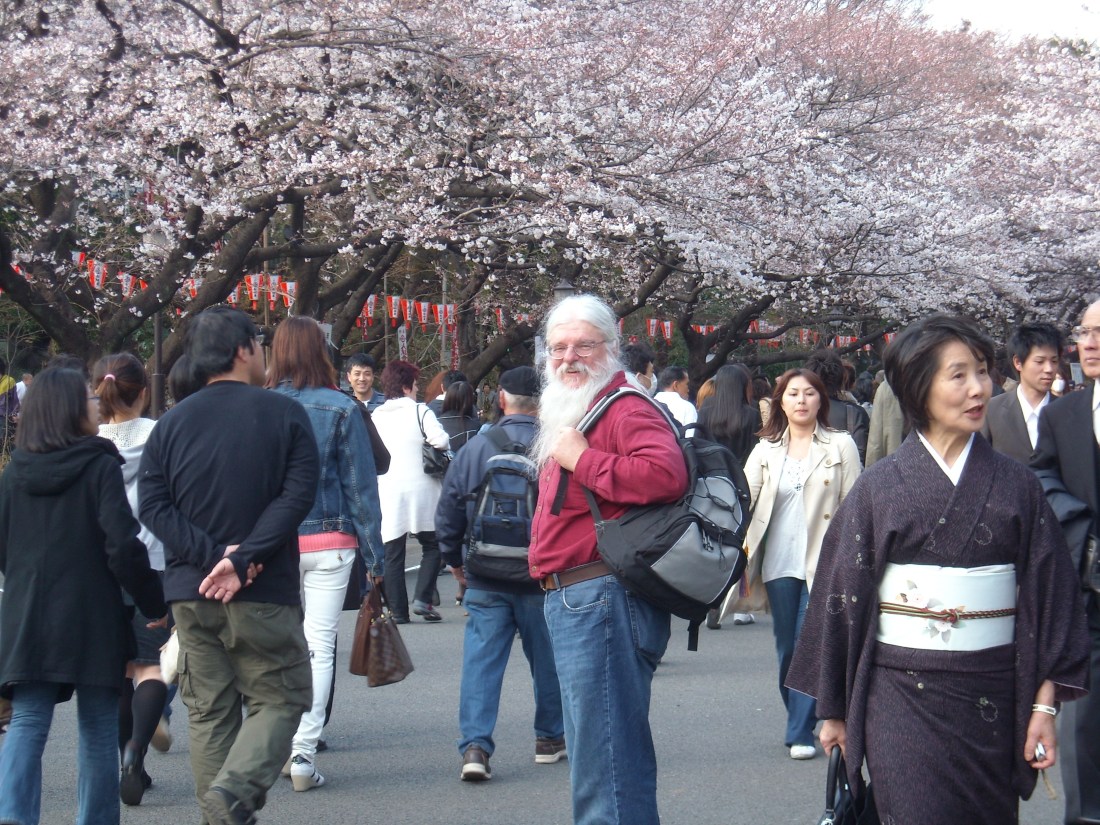 This is a photo which shows that he enjoyed the cherry blossoms in Japan.