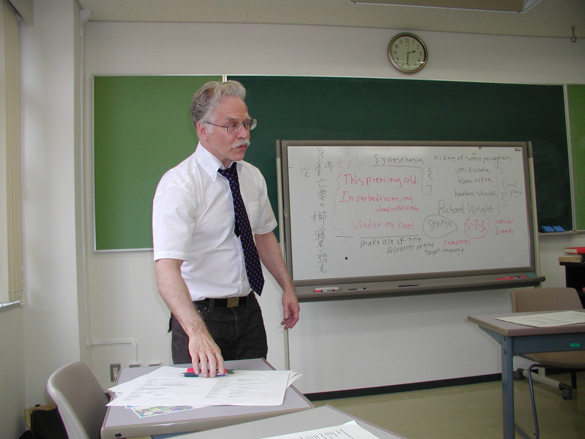 Professor Kirby Record at AIU gave workshops on haiku in English, where participants including students and citizens studied about how to write haiku in English and translated Japanese haiku sent to the contest into Japanese with him.