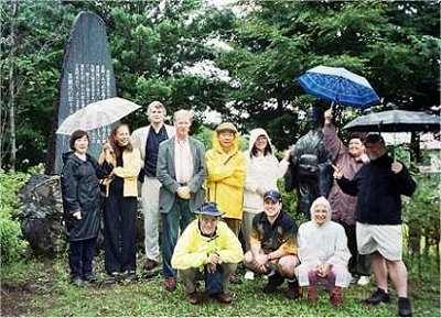 L-R standing: Matsuko Teraoka, Deborah Russell, Alan Summers, Daniel Gallimore, Susumu Takiguchi, Debi Bender, Matsuo Basho (statue), Judit Vihar, Bruce Ross. L-R seated: Brian Selby, David Barsky, Visnja McMaster