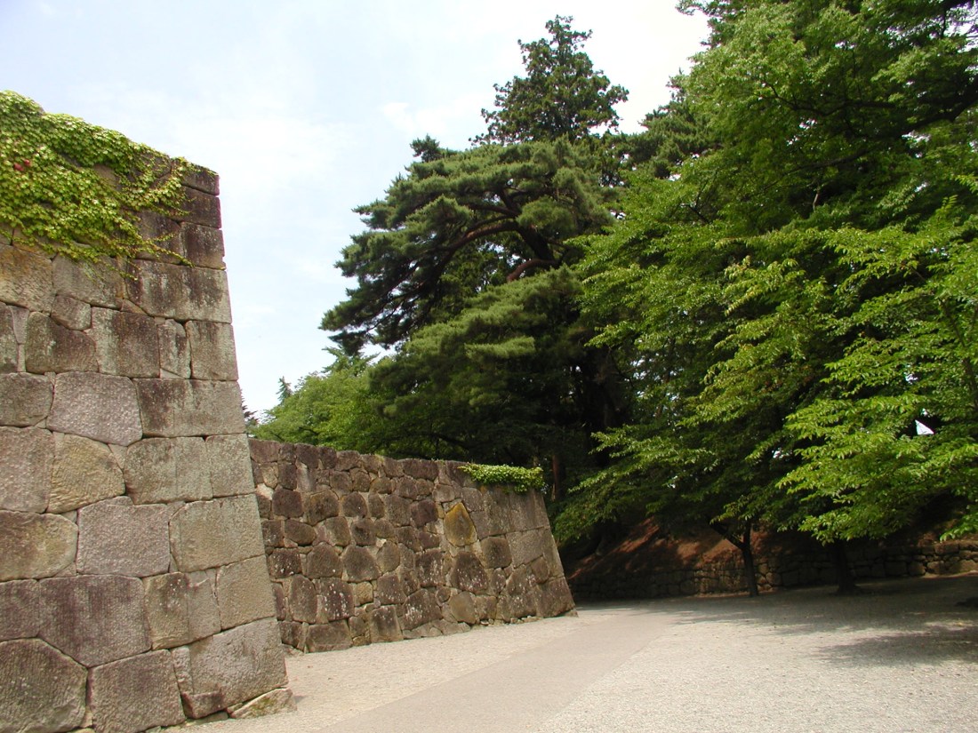 石垣に緑したたる鶴ケ城