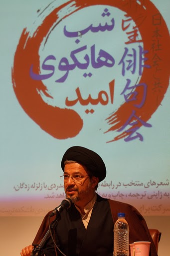 * ペルシア語記事・写真は、「希望俳句会」を企画した、日本文学の翻訳家Gh.ザーケリー氏(テヘラン大学日本研究科卒・勤務)の報告ブログより。同氏は、近代俳句選集や『奥の細道』、『曽根崎心中』、村上春樹『東京奇譚集』など、訳書多数。