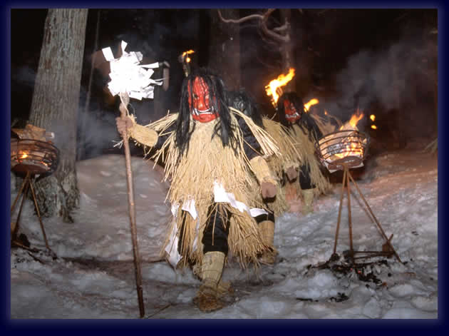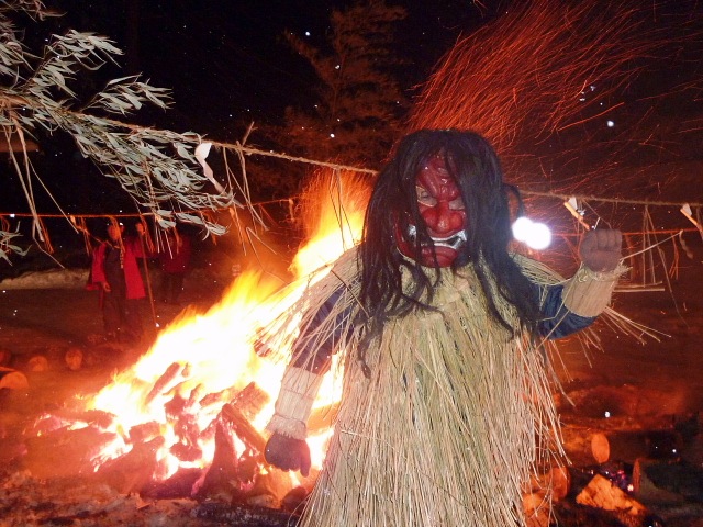 Namahage-Sedo Festival (なまはげ柴灯まつり)takes place in Shinzan shrine (真山神社)in Oga city , Akita prefecture(秋田県), Northern Honshu, Japan, the second Friday through the second Sunday of February every year.