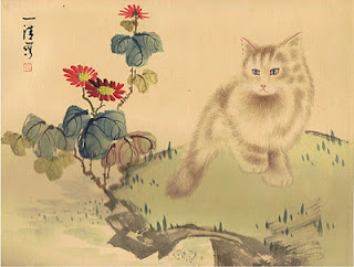 On a Chinese painting showing a cat looking at flowers ( doc)