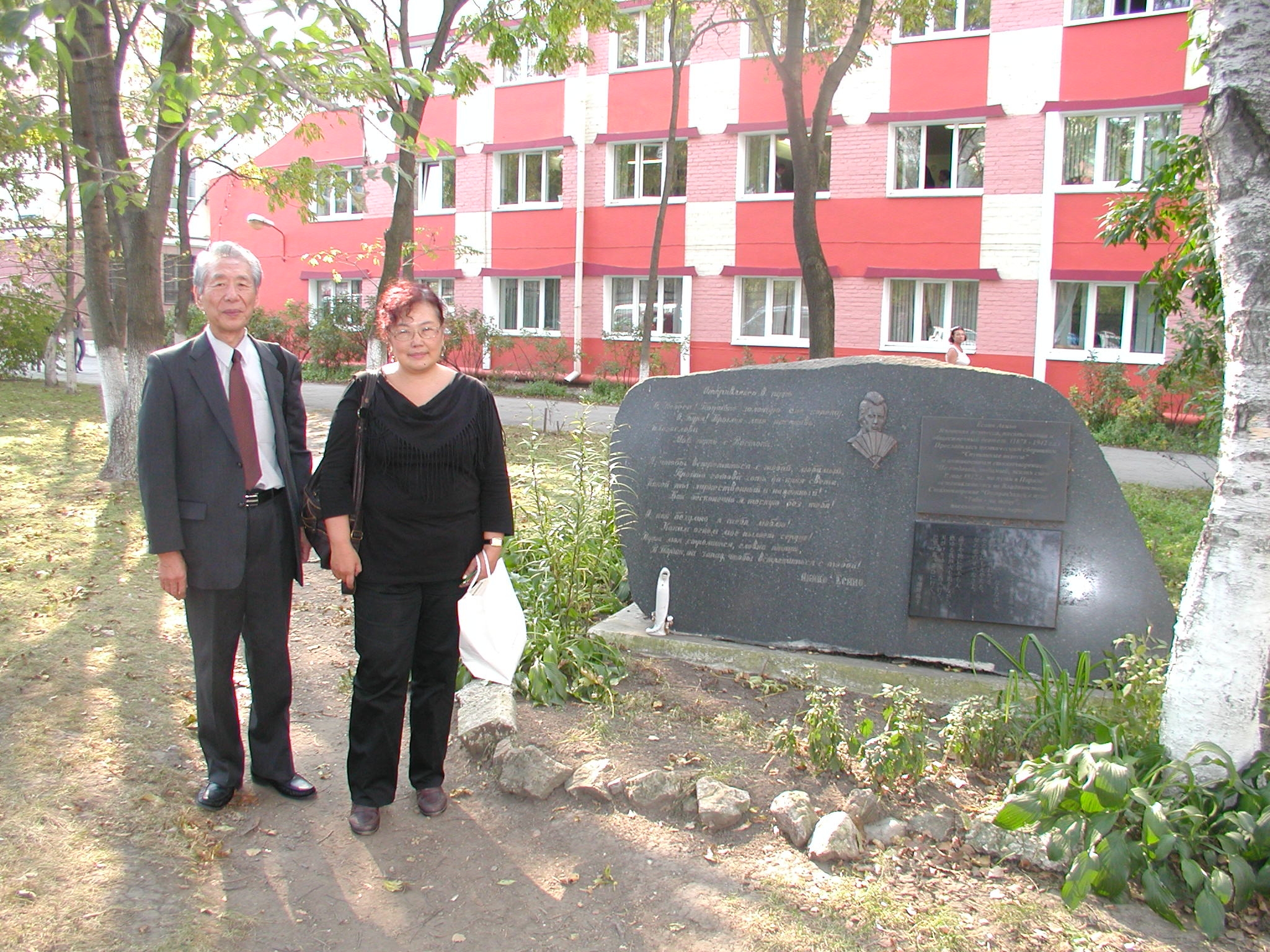 平成19(2007)年には与謝野晶子記念文学会が結成された。会長の極東連邦大学准教授スレイメノヴァ・アイーダ氏にご案内いただき、詩碑の前で記念写真をとりました。