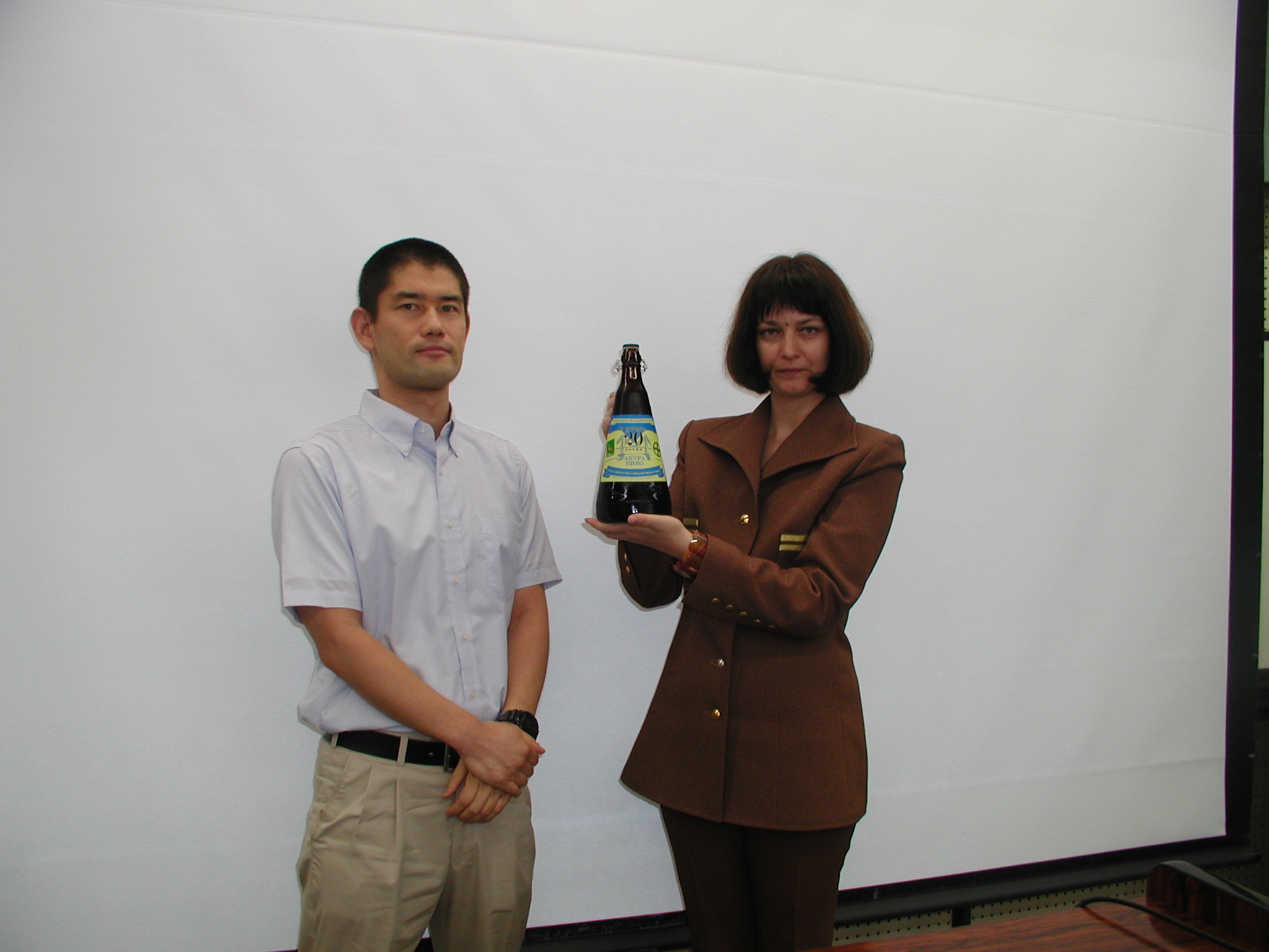 SUMAROKOVA Olga was also presented with Akita local beer produced by Akita youth