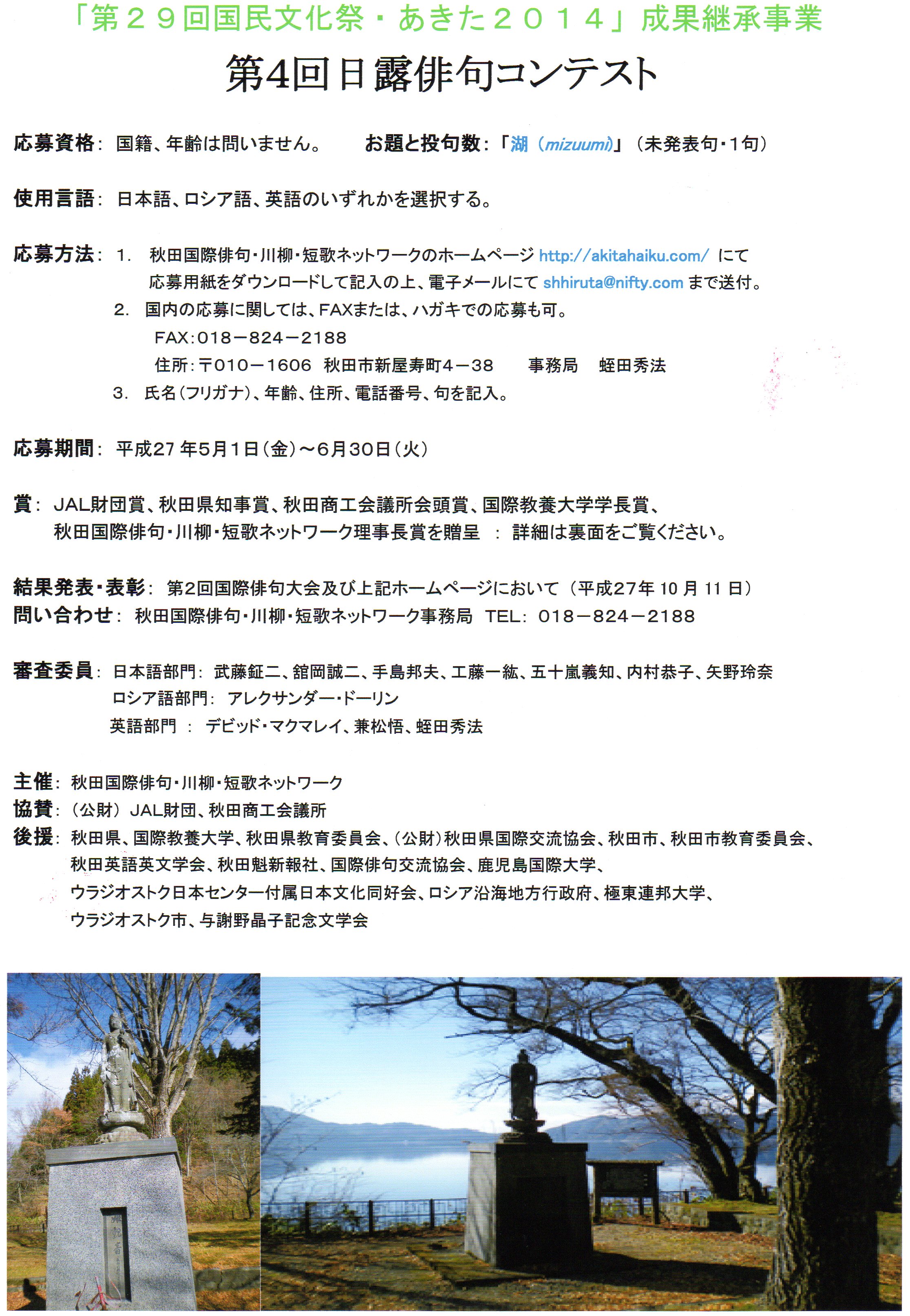 本年、「第29回国民文化祭・あきた2014」成果継承事業として、第4回日露俳句コンテストを開催いたします。