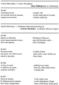Russian Haiku (12) Hiruta 2017/05/30 Published by Hiruta I am a haiku poet. Let's share haiku, shall we? View all posts by Hiruta Published 2017/05/30