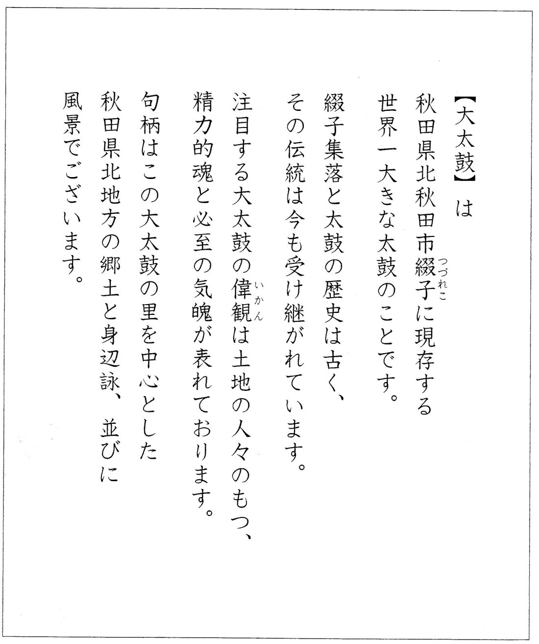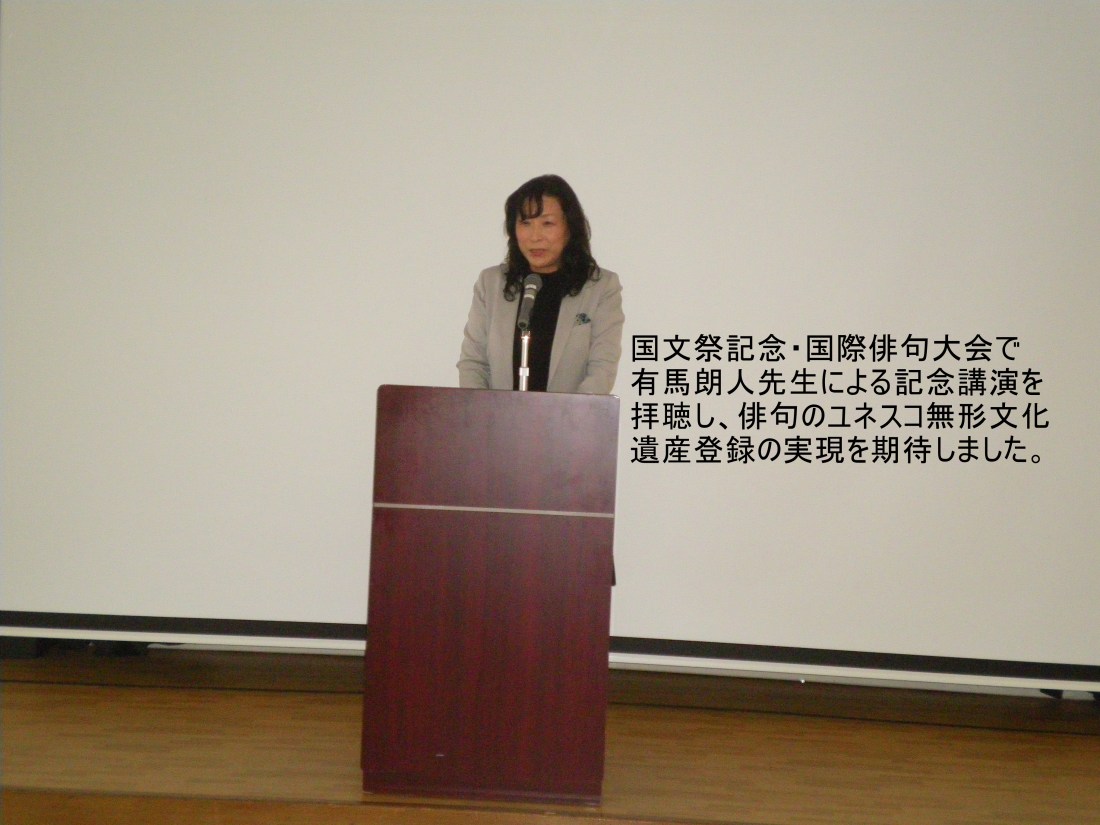 さらに、日露俳句コンテストに句を寄せ、日露俳句大会や国民文化祭記念・国際俳句大会に参加。また、天為秋田支部主催の吟行や句会に参加し、主宰の有馬朗人先生(国際俳句交流協会会長)や国内外の参加者と交流を深めた。