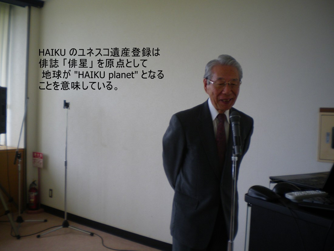 「俳句は、いかなる他の慈悲深い伝統、文学、芸術的で文化的な作品とまさに同じように、今日のあらゆる世界の問題に関する理解と協力の助けになるかもしれません。またこのようにして、俳句は世界平和の樹立に向けて助けになるだけでなく、俳句的な生き方を実践することによって我らの惑星での生命を維持する方向に向けての助けになるかもしません」と。