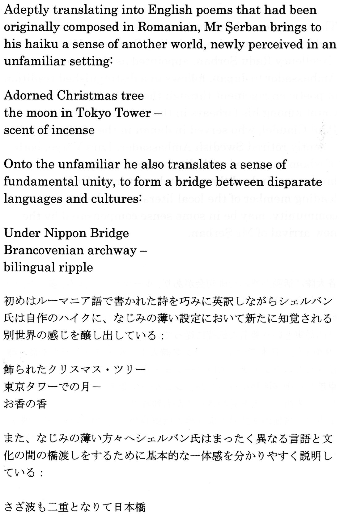 On May 8, 2017, Vasile MOLDOVAN in Romania, a haiku friend of Hidenori Hiruta’s, kindly and passionately presented “Radu Șerban AMBASSADORIAL HAIKU”, a haiku booklet, for 6th Japan–Russia Haiku Contest.