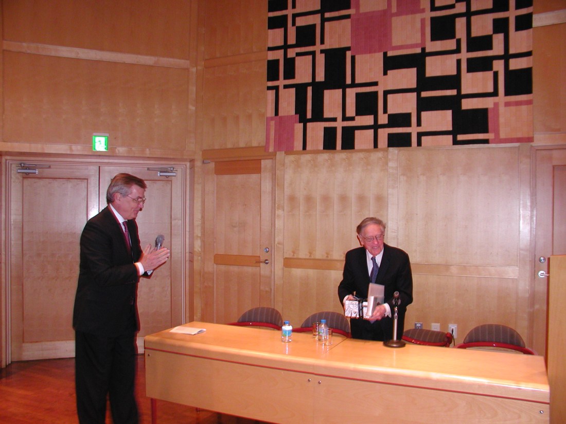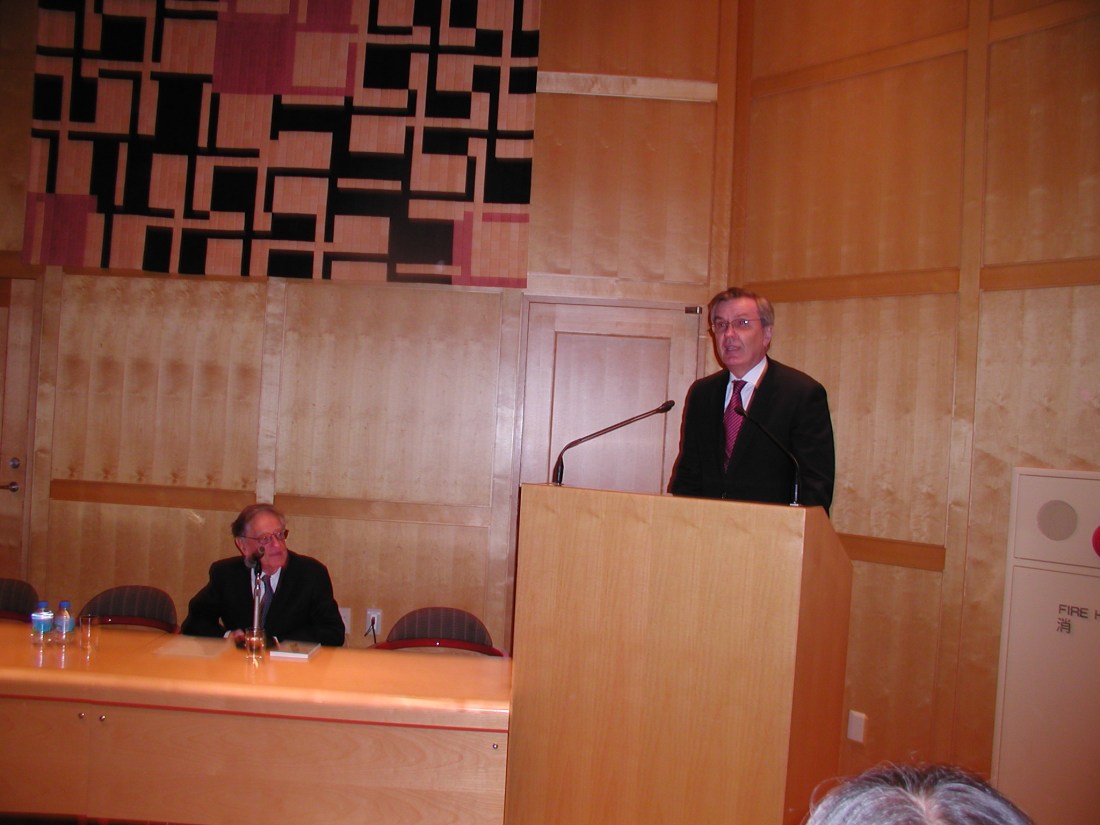 Last night we organized the first lecture activity of the newly formed Tokyo International Literary Society (TILS) at the Alfred Nobel Auditorium of the Swedish Embassy. The lecturer was the renowned authority on Japanese literature, Dr. Donald Keene. It was truly an historic moment. Dr. Keene spoke about his encounters and friendship with writers like Tanizaki Jun’ichirô, Mishima Yukio, Abe Kôbô and Ôe Kenzaburô. He also spoke with sadness in his eyes about his old friend and former Minister of Education Nagai Michio.