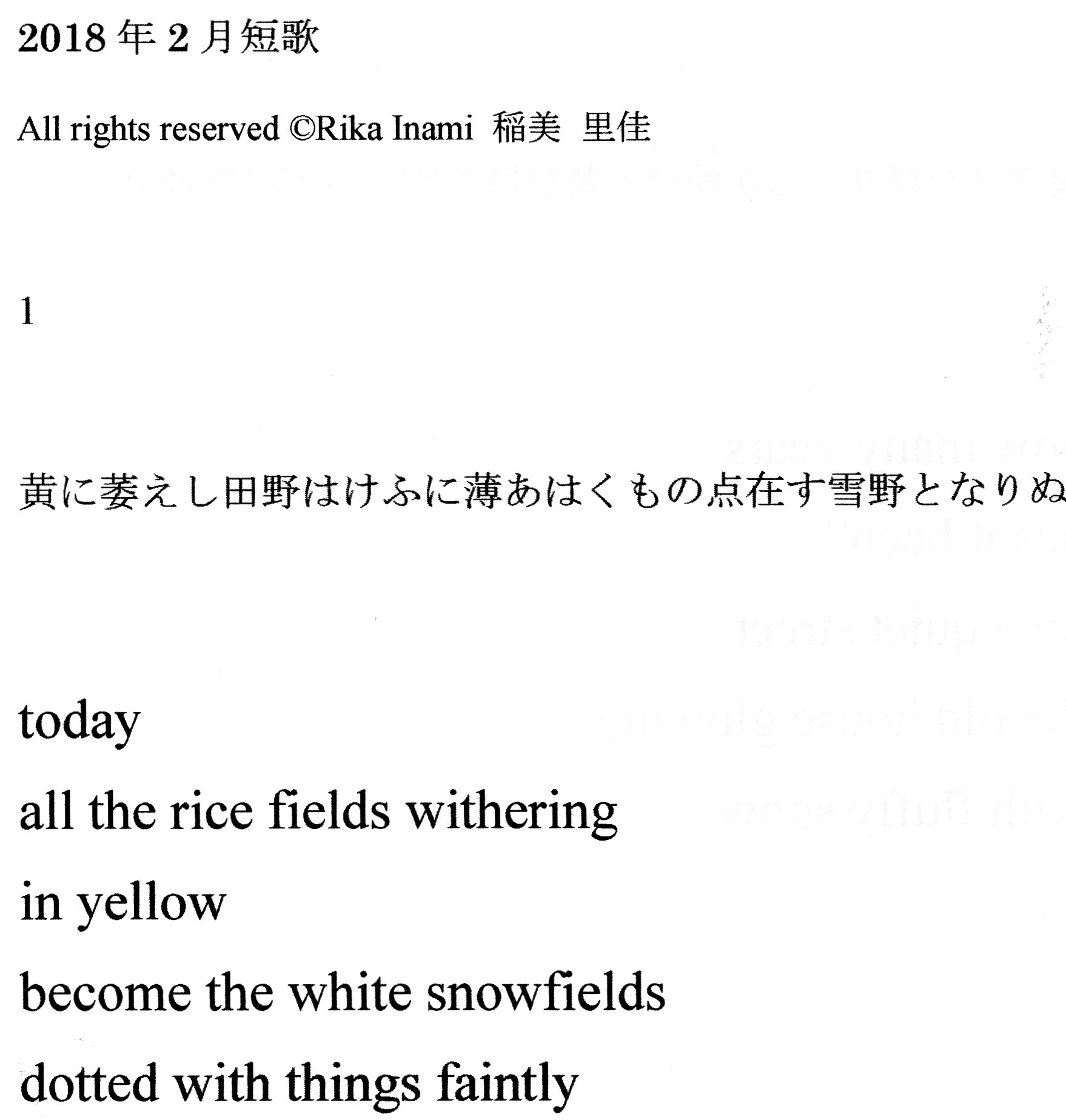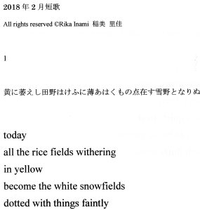 H30(2)(1) Hiruta 2018/01/09 Published by Hiruta I am a haiku poet. Let's share haiku, shall we? View all posts by Hiruta Published 2018/01/09