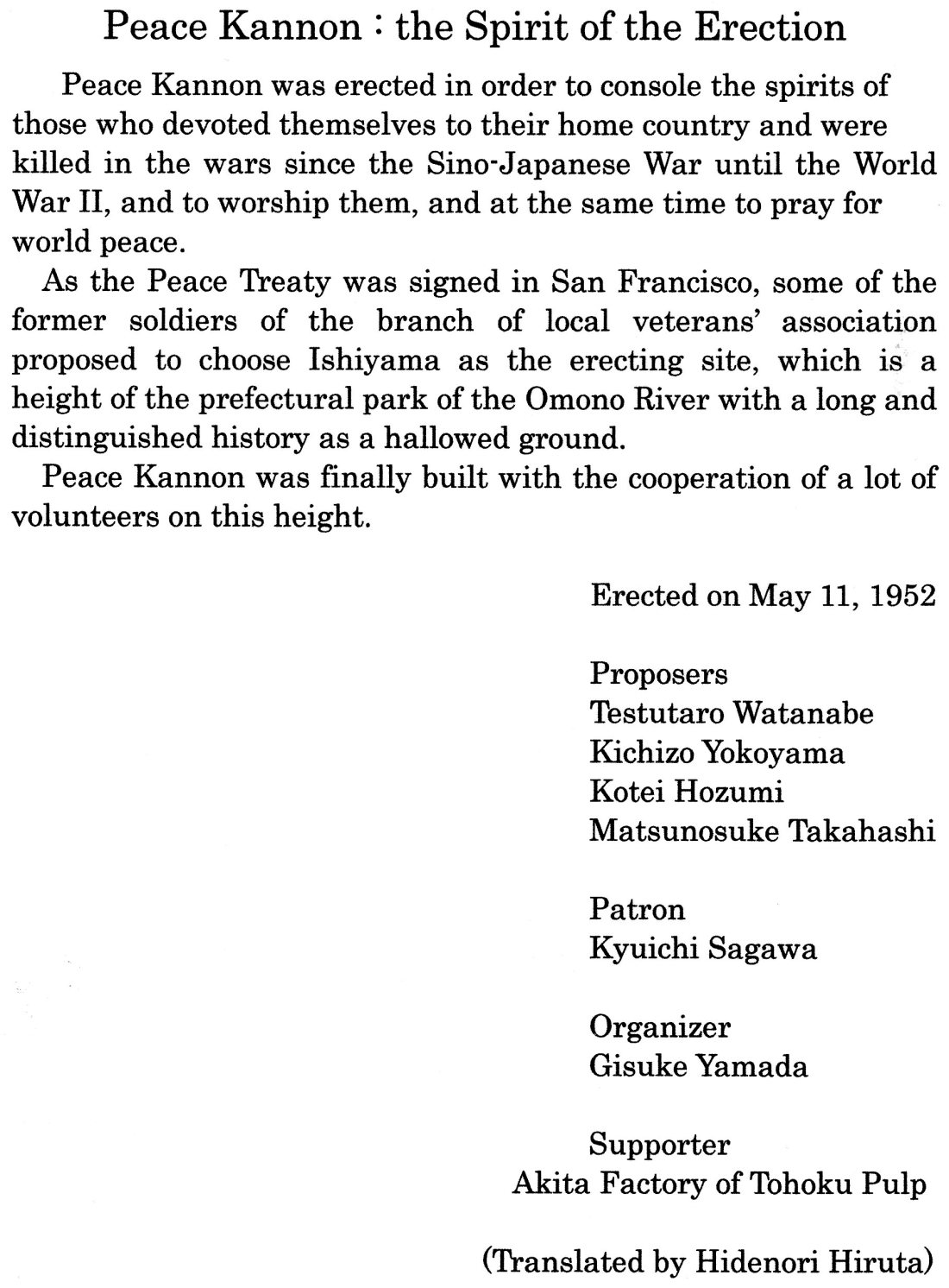 The Erection of Peace Kannon in 1952