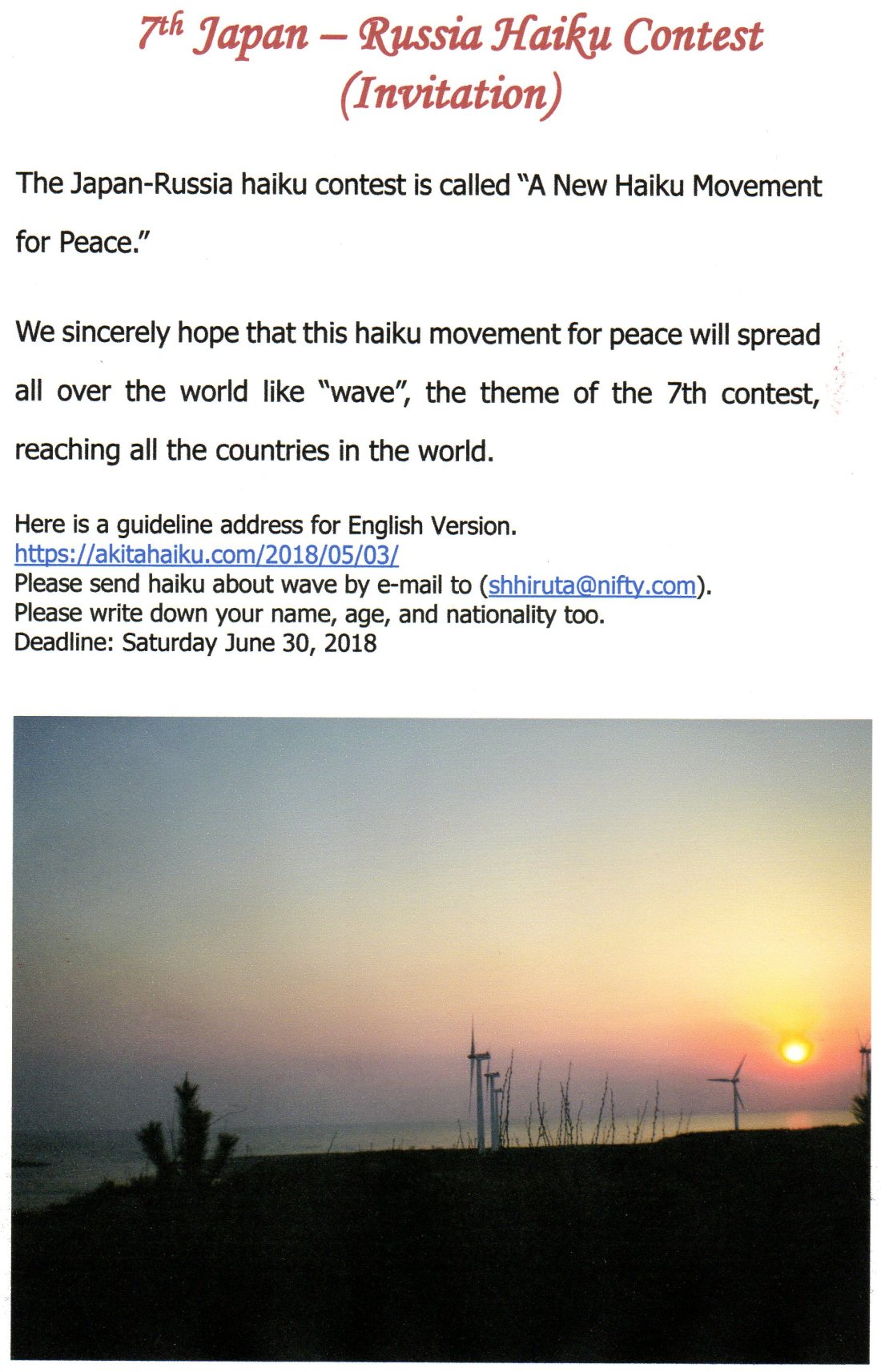 第7回日露俳句コンテストの最終案内です。