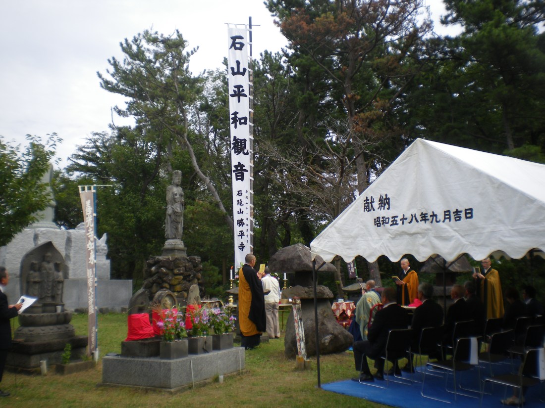 昭和27年5月、日清戦争以来太平洋戦争に至るまで御国のために一身を捧げられた戦没者の霊を慰め祭り且つ世界平和を祈念するため古来霊地として由緒ある秋田県秋田市勝平の高台石山の地に平和観音が建立された。
