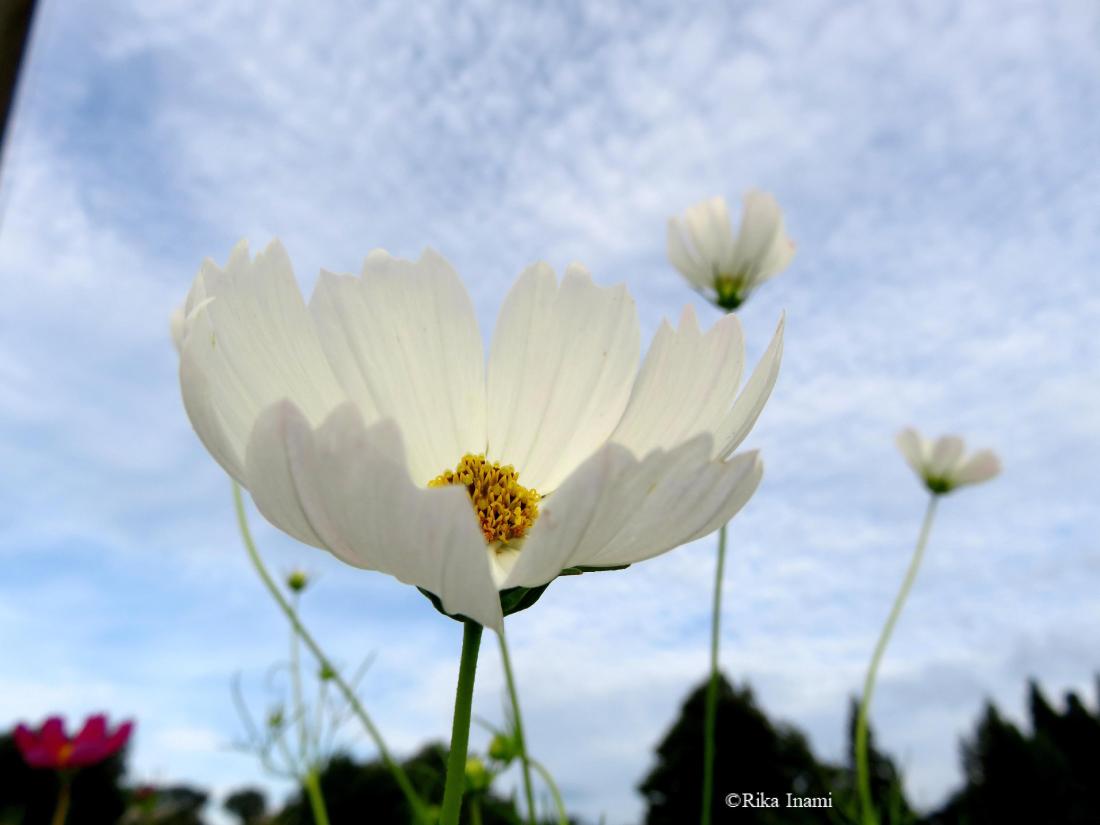 盆過ぎて み魂(たま)かなたへ 風しろく 置きのみやげの秋桜(こすもす)そよぎ