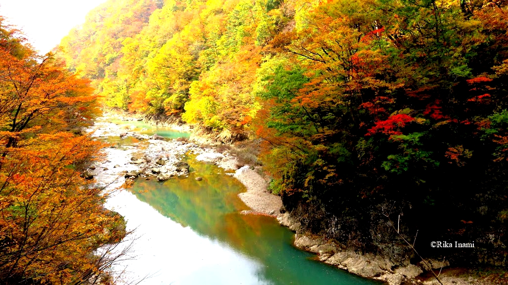 異世界に踏み入りたるか峡谷は未だ見ざるの錦秋にして