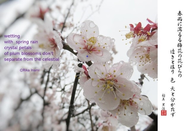 春雨に濡るる梅花の花びらの透きとほり色 天(あま)と分かたず