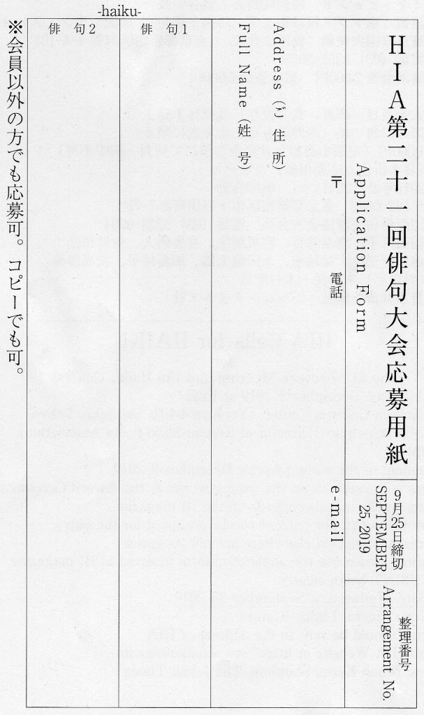 応募用紙について:大会係にお電話の上、お取り寄せ下さい。