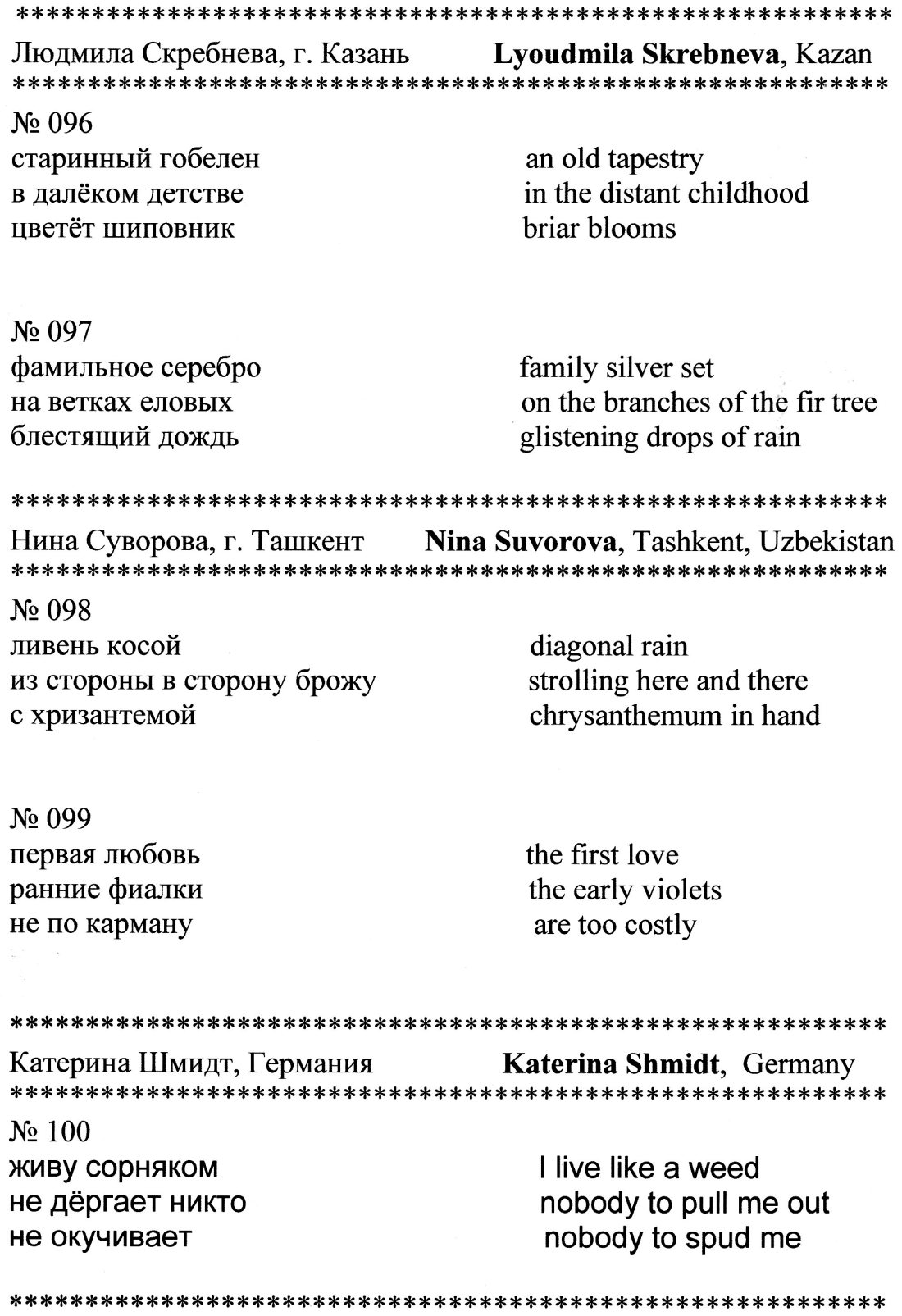 Here are two haiku by Ms. Liudmila Skrebneva in “100 RUSSIAN HAIKU FOR AKITA”, which appeared on the website below.