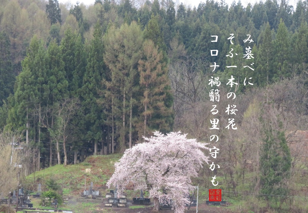 み墓べにそふ一本(ひともと)の桜花 コロナ禍翳る里の守かも