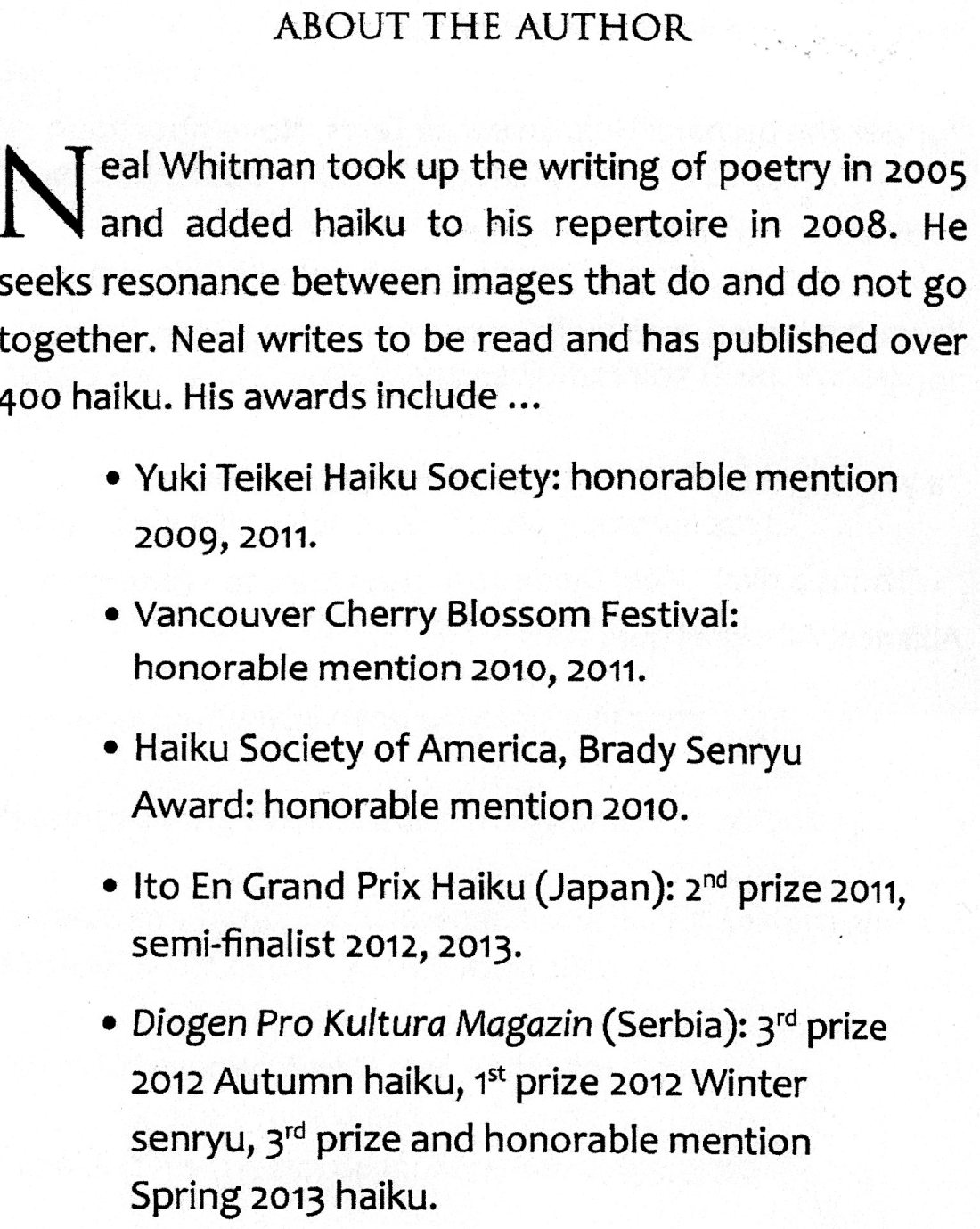 Neal Whitman is also one of the authors who kindly and delightedly sent his nice haiku to the World Haiku Series 2019.