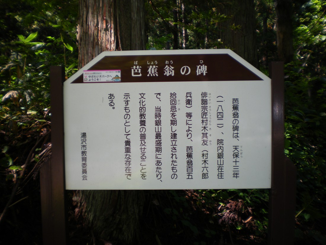 On March 13, 1842, Bashō’s haiku monuments were erected in the entrance of the Innai Silver Mine for the 149th anniversary of the death of Matsuo Bashō.