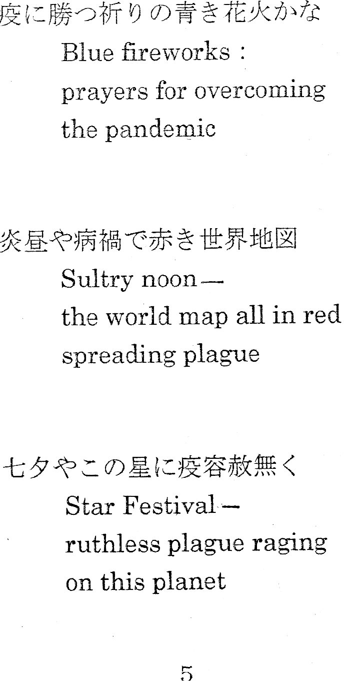 Satoru Kanematsu kindly and delightedly presented a 6-page haiku leaflet on COVID-19 to the World Haiku Series 2020.