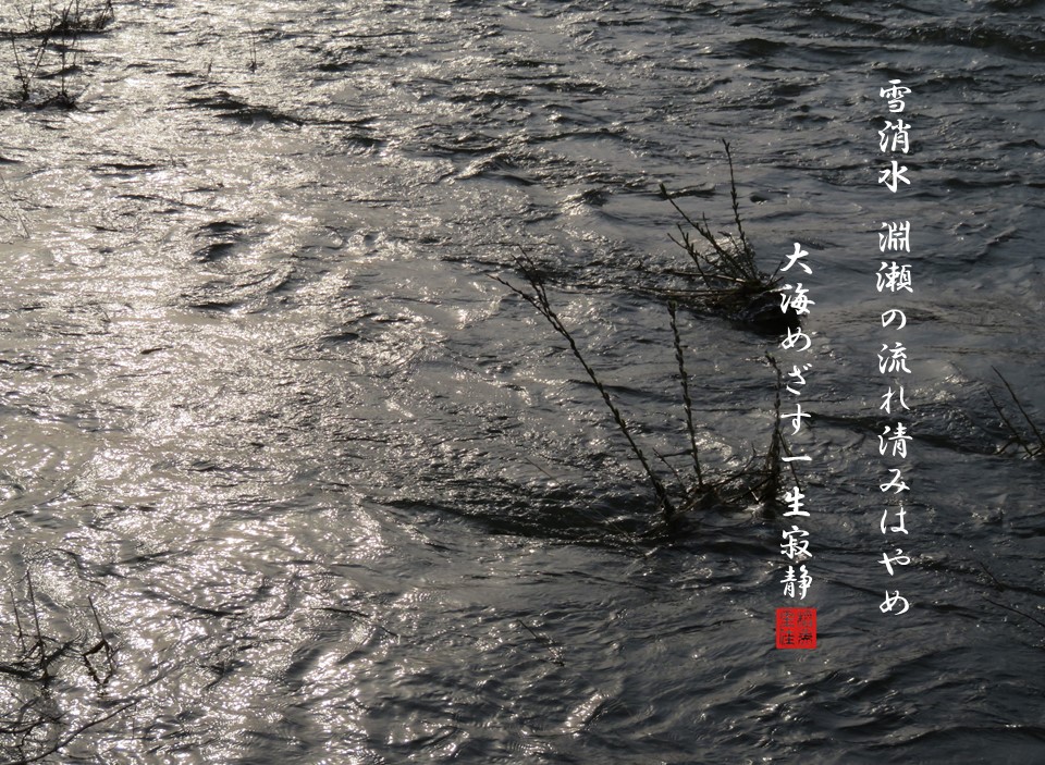 雪消水 淵瀬の流れ清(す)みはやめ大海めざす一生(ひとよ)寂静