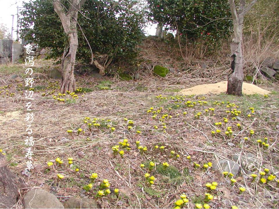 象潟の野辺を彩る福寿草