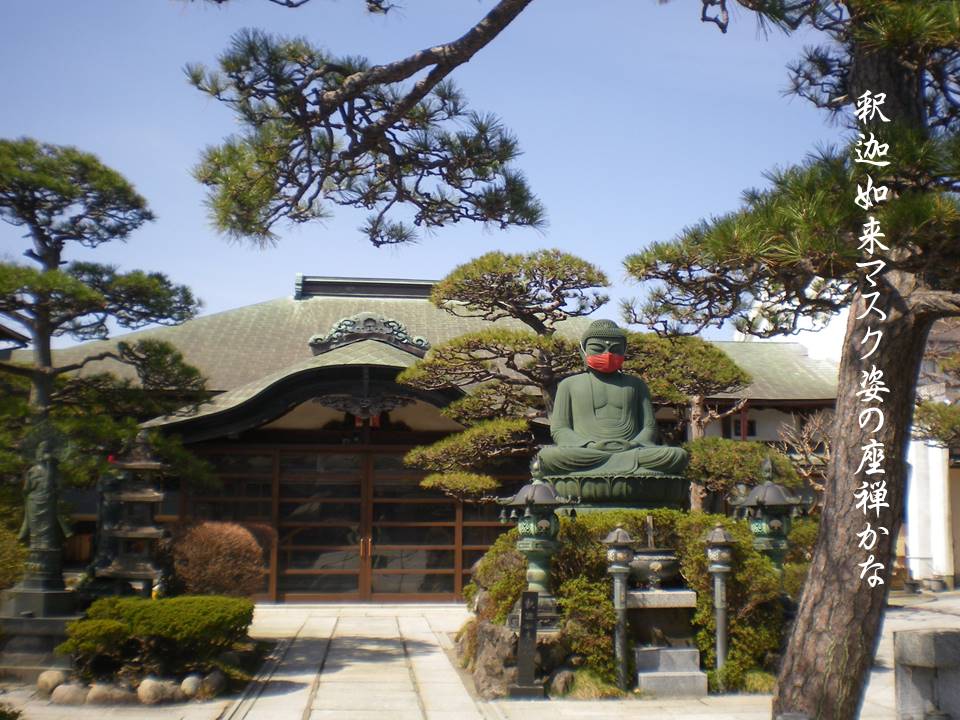 釈迦如来マスク姿の座禅かな