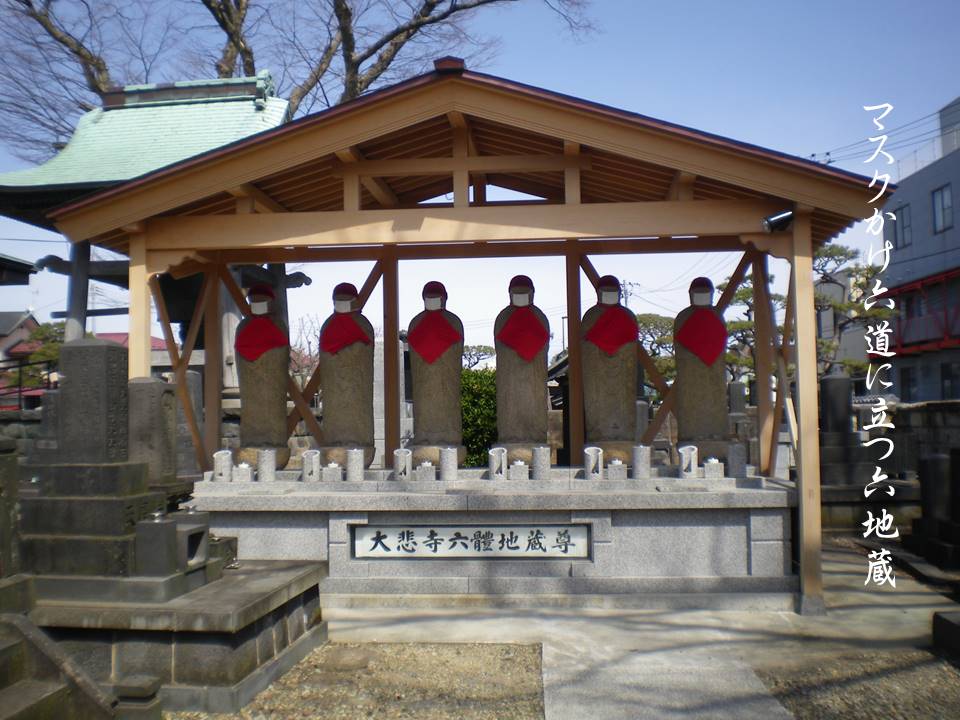 マスクかけ六道に立つ六地蔵