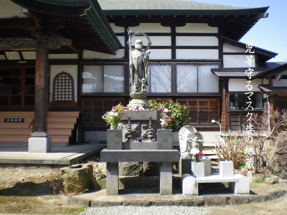児等守るマスク姿の地蔵尊