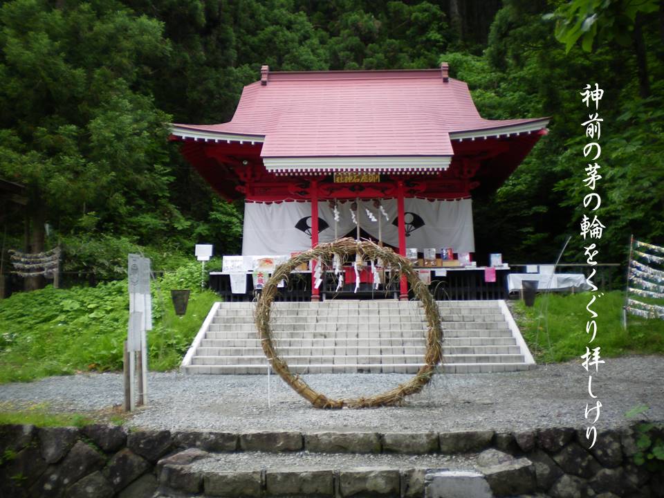 神前の茅の輪をくぐり拝しけり
