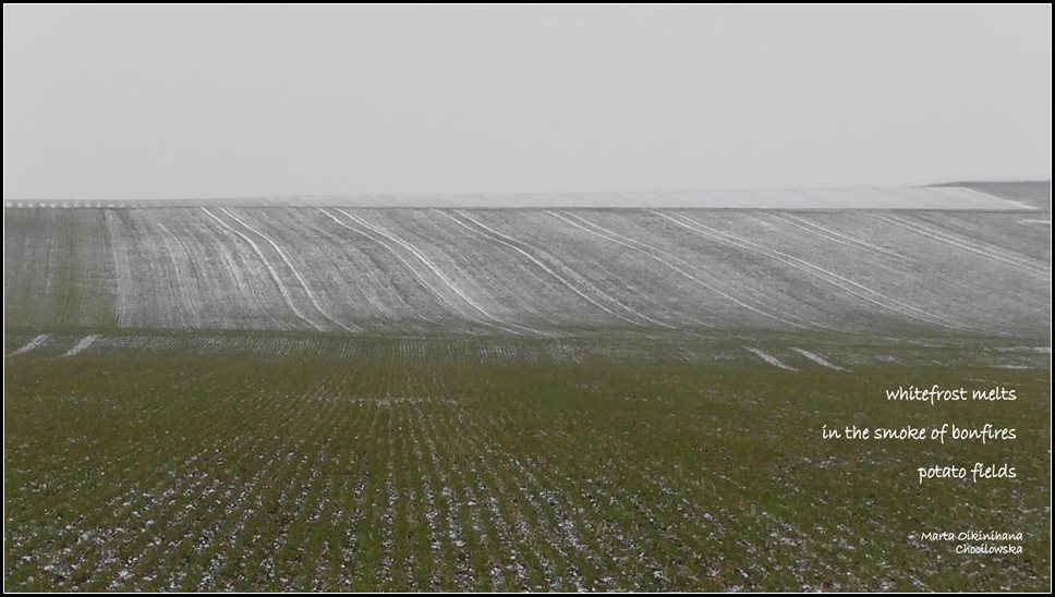 Biography: Marta Chocilowska is a retired economist, writer, and haiku poet. Her poems have been published in haiga and haiku journals worldwide, including Cattails, Frogpond, tinywords, and Contemporary Haibun Online. She has co authored several haiku and senryu anthologies, and her book The Seasons in Polish Haiku came out in 2015. She has been a prize winner or judge in Polish, Romanian, English, and Japanese haiku contests and won the Sponsor’s Award in the Ito en Oi Ocha New Haiku Contest 2016. She has been president of the Polish Haiku Association since 2018 and managing editor of the PHA’s annual almanac Migratory Birds. She also serves as manager of The Haiku Foundation’s Haiku Registry. She resides in Warsaw, Poland.