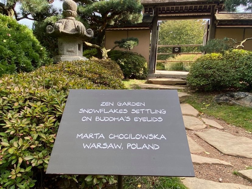 Placed in the Japanese Garden at the Chicago Botanic Garden within Words in Bloom (fall 2020)