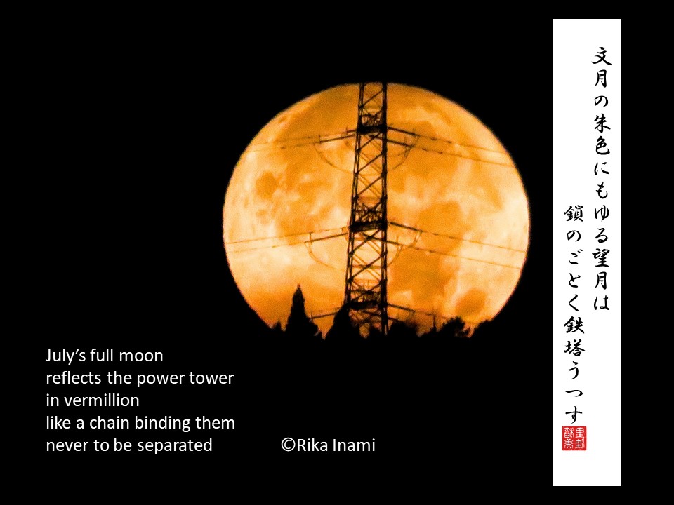 文月の朱色にもゆる望月は鎖のごとく鉄塔うつす