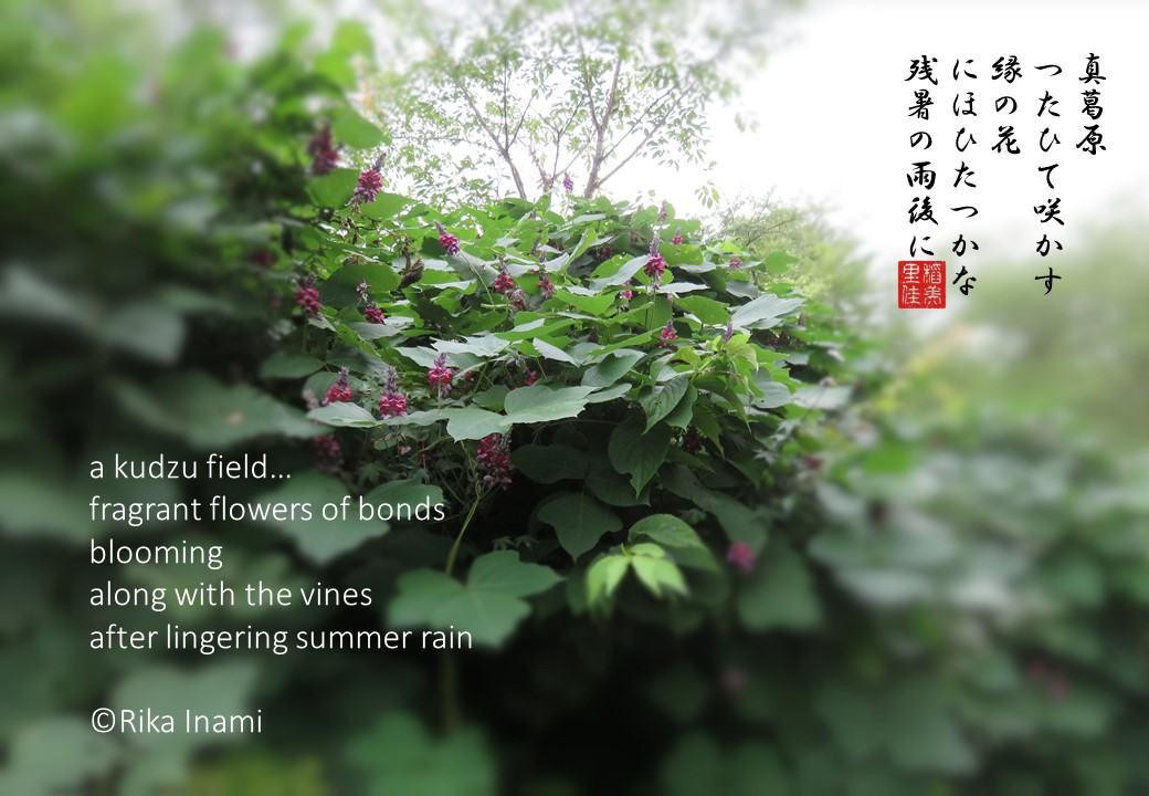 真葛原 つたひて咲かす縁の花にほひたつかな残暑の雨後に