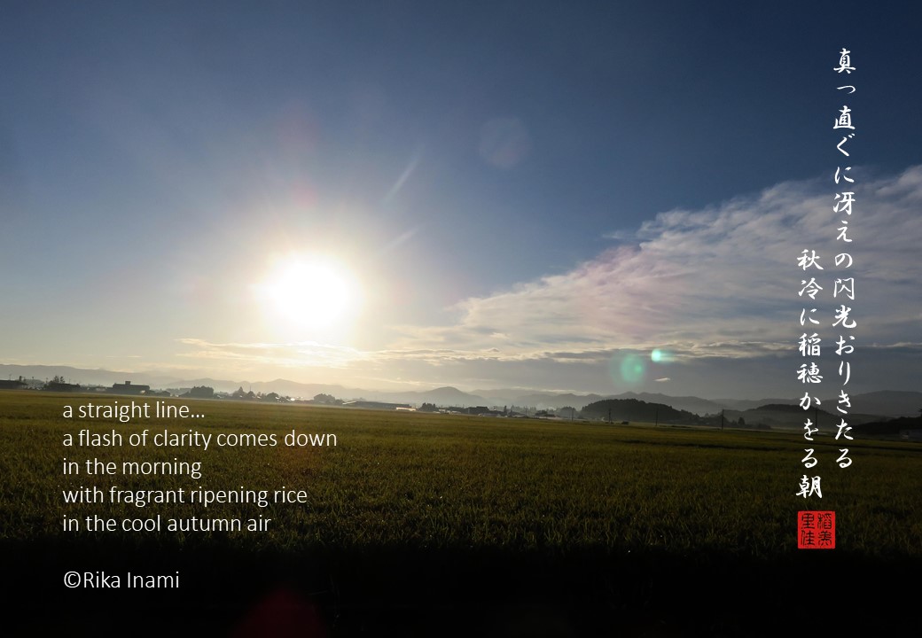 真っ直ぐに冴えの閃光おりきたる秋冷に稲穂かをる朝