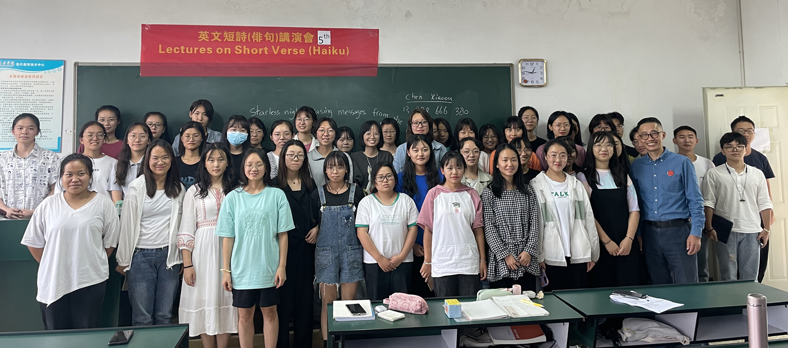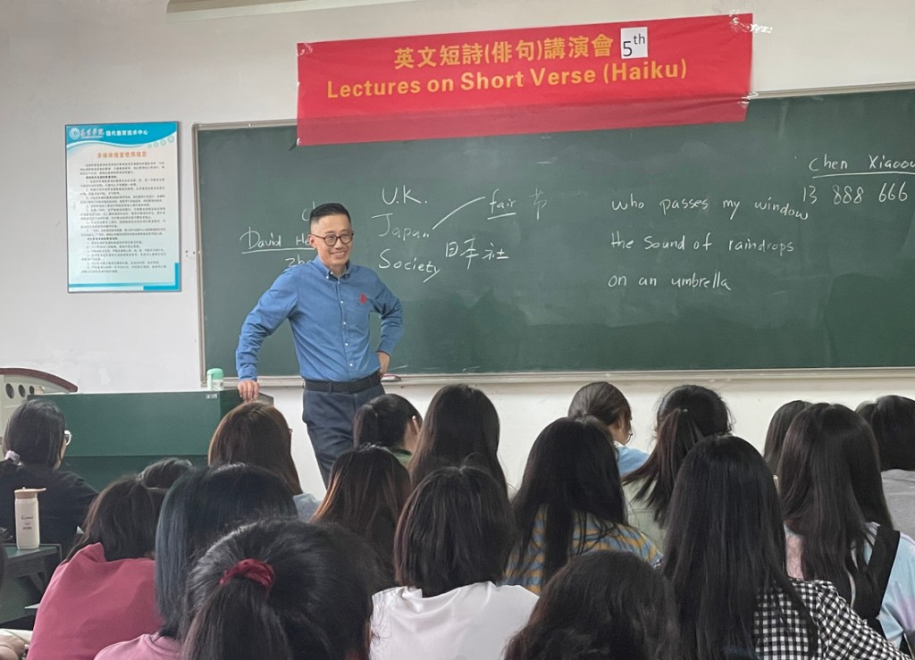 On 17 September 2021, Mr. Chen Xiaoou, a haiku poet in Kunming, China gave a lecture on haiku at the Foreign Language Department of Kunming University. Around fifty students attended the lecture with great curiosity. The vice director of the department Mrs. Ma presided at the lecture. “This is the very first lecture on haiku at our university, it’s a great opportunity for our students to learn something about the classic tradition of this Japanese art, ” said Mrs. Ma in her speech. Mr. Chen Xiaoou explained the origin and the evolution of the art of haiku. He then presented some excellent examples by the great poets like Yamazaki Sookan, Bashoo and Kobayashi Issa, followed by some refreshing pieces written by modern poets all over the world, many of which are prize winners of international haiku contests. The lecture lasted for over two and a half hours, and during this time the students were all immersed in the enjoyment of the beauty of this short verse. Before this lecture, what the students would think of, when talking about Japan, is only sushi, kimono and sakura. During the lecture the students’ eyes were wide opened, and after the lecture, their minds! Before this, Mr. Chen Xiaoou had delivered four lectures on the art of haiku to his friends, which were very much enjoyed and welcomed by the attendants. He plans to share his experience and joyfulness with haiku with more and more people in China. Mr. Chen Xiaoou has published his composed haiku 25 times in Japan, the US, UK, Australia and Croatia. One of his pieces was selected as the Haiku of the Week on Japan Society.