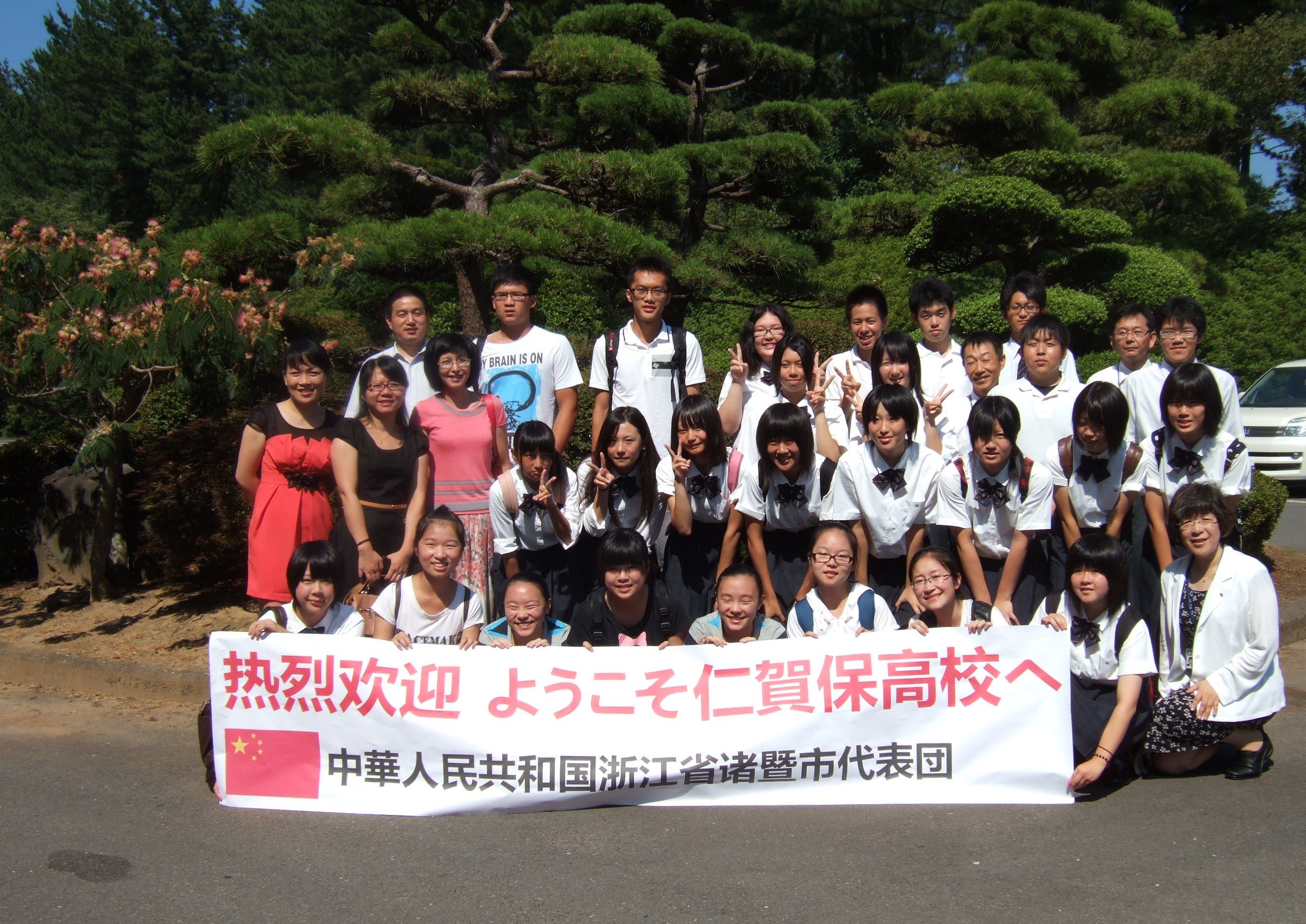 October 23, 2008, Nikaho City and Zhuji City, based on the basic principles of the Japan-China Peace and Friendship Treaty, signed a friendship and exchange alliance agreement to promote friendship and understanding between the two citizens and further develop the friendship and cooperation between the two cities. In 2010, 11 high school students and 3 leaders from Nikaho City visited Zhuji City. The members were enthusiastically welcomed. In August, 2012, 12 high school students and 4 leaders from Zhuji City visited Nikaho City. Students enjoyed the Xi Shi Festival, climbed Mount Chōkai, and enjoyed Kanto Festival while experiencing a 3-day homestay. During the visit to Nikaho High School, they interacted with high school students in Nikaho City through club activities. ― Hidenori Hiruta, Akita International Haiku Network