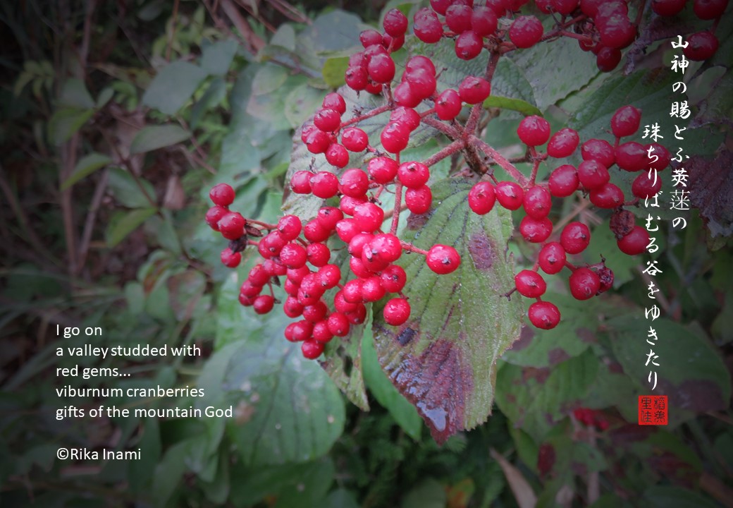 山神の賜(たまもの)とふ莢蒾(ガマズミ)の珠(たま)ちりばむる谷をゆきたり