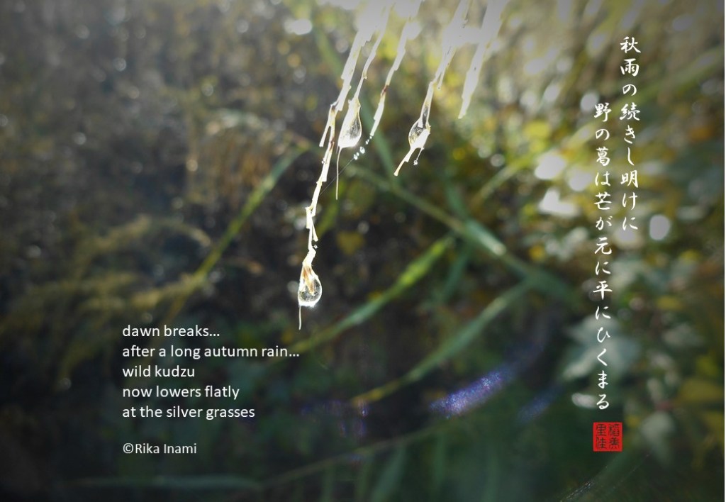 秋雨の続きし明けに野の葛は芒が元に平にひくまる