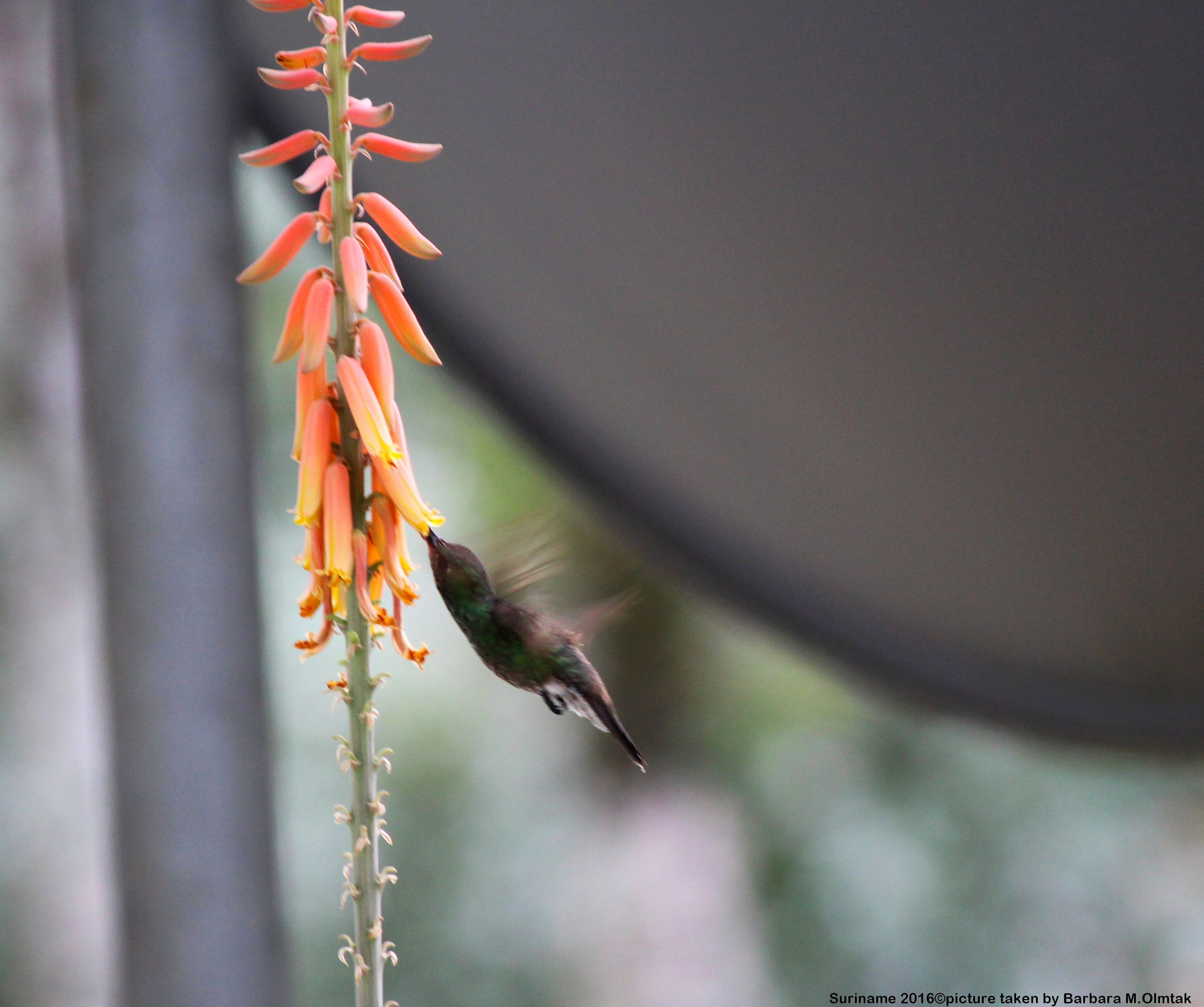 Took the picture in my native country Suriname. Love these tiny, beautiful hummers.