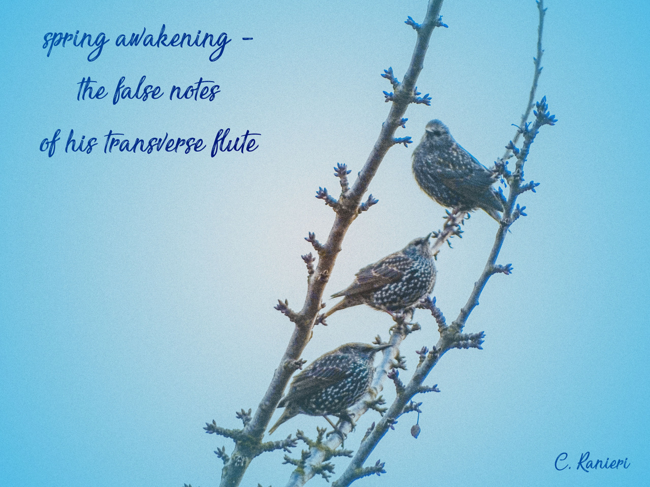 confinement – from our balconies we share a half moon February 8, 2021 (Mainichi Japan) 閉じ込め 私たちが共有するバルコニーから 半月 like a magnet attracted to the old stable – smells of my childhood 磁石のように 古い馬小屋に惹かれる 子供の頃のにおい sweetness of the autumn – my place in the sun stealing by a lizard 秋の甘さ 日向の私の場所 トカゲによる横取り new agenda – the long list of dreams to deconfine Concours Haïkus 2021 Societatea Română de Haiku Mention 新しいアジェンダ 夢の長いリスト 制限を解除する confinement – at the end of my paint brush the blue of the sea 閉じ込め ペイントブラシの先端に 海の青 forest path – far away from this masked world breathing the autumn HIA 2021 - Haiku International Association 森の小道 このマスクされた世界から遠く離れて 秋の呼吸