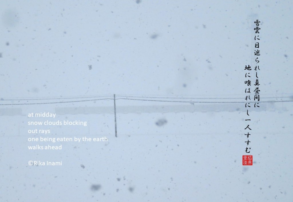 雪雲に日遮られし真昼間に地に喰はれにし一人(いちにん)すすむ