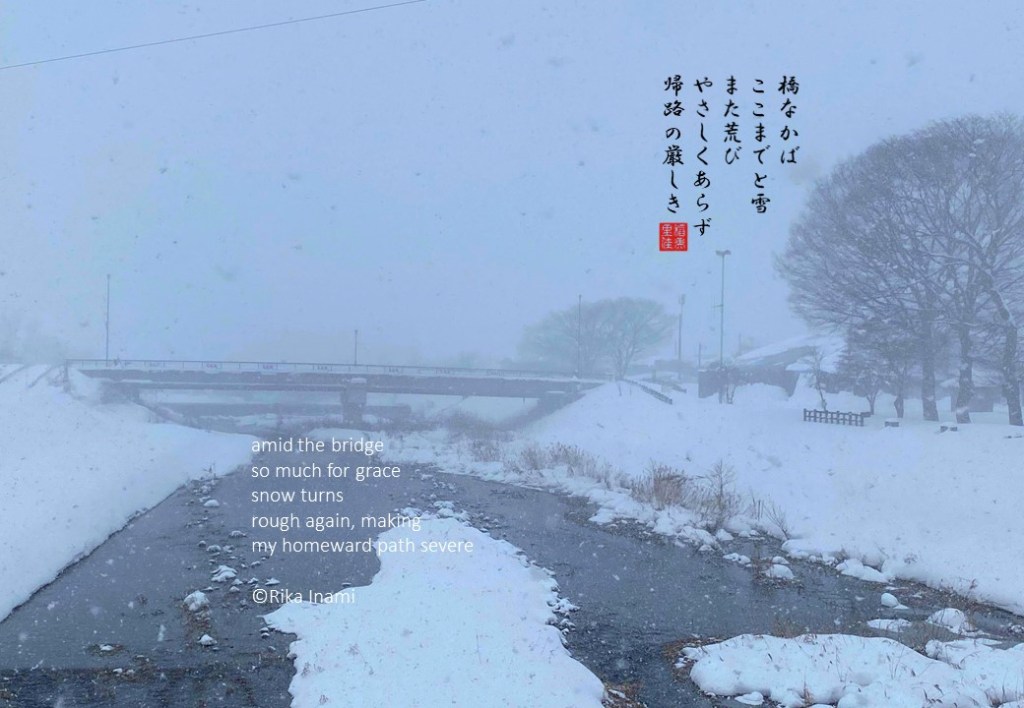 橋なかばここまでと雪また荒びやさしくあらず 帰路の厳しき