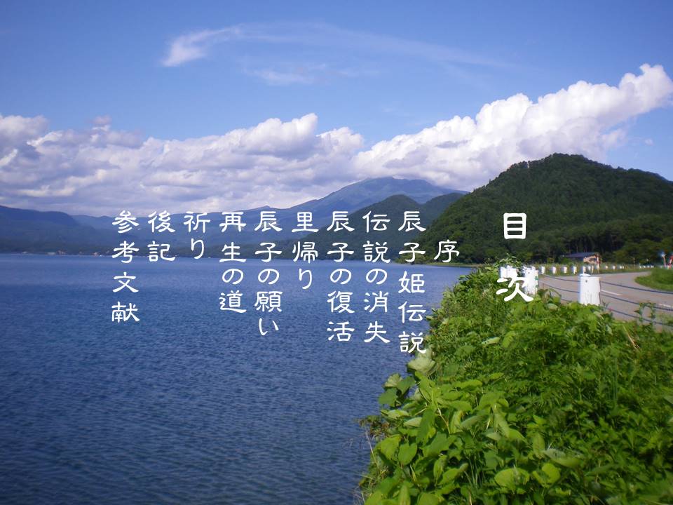 Tatsuko made up her mind to visit Gozanoishi-jinja Shrine and to pray for the revival of Lake Tazawa. She said to herself, “I am now a resurrected soul. I wish in prayer that my lake will be revived so that my mother’s trout, Kunimasu, can swim again.”