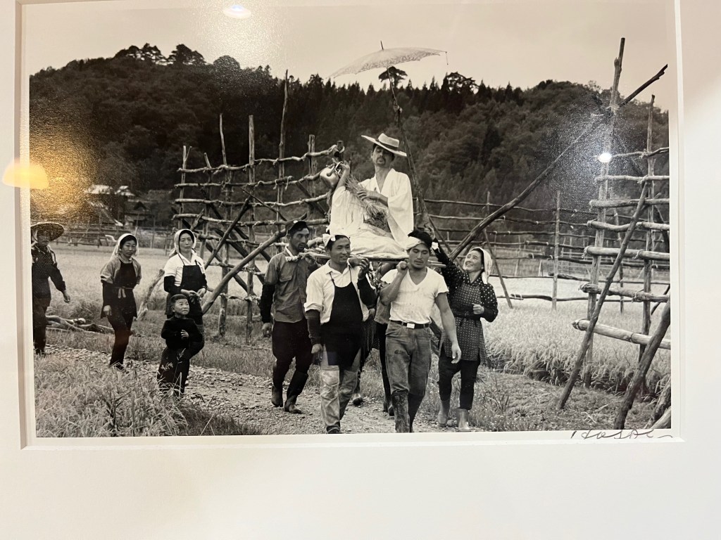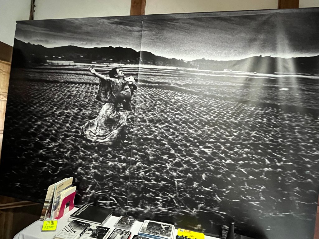The other day, I visited the Kamaitachi Art Museum, where photos of Tatsumi Hijikata, the founder of Butoh, a dance genre, are displayed. Photographer is Hosoe Eikoh. The museum was opened in 2016 in the former Haseyama Residence in Tashiro, Ugo Town, Akita Prefecture. The Haseyama family was a large landowner and wealthy farmer in the Tashiro area from the Edo period to the farmland reform (1946-1950). The residence was built in a three-story house in the Meiji period and was repaired by Ugo Town in 1998 after the family left; since then, it has been used as the Comprehensive Exchange Promotion Facility. Now, I heard the following story about Tatsumi Hijikata from Mr. Hisao Abe, Director General of Kamaitachi Association, a non-profit organization. Tatsumi Hijikata suddenly showed up for a photography session in Tashiro with Eikoh Hosoe one day in the autumn of 1965, leaving a note for his family, "I'm going to the Haseyama family in Tashiro, Ugo Town, Akita." How did Tatsumi Hijikata know the mountainous areas of Ugo Town in southern Akita Prefecture, like an isolated island in Japan? Tatsumi Hijikata's father was from Ugo Town, and Tatsumi visited there with his father in his childhood. He also knew the Haseyama family in the mountainous area of Ugo Town, just up the mountain from his father's family home because his cousin(woman) had married into a family next door to the Haseyama family in Tashiro. Thus, Hijikata Tatsumi visited Tashiro with photographer Eikoh Hosoe, and Eikoh began taking pictures of Tatsumi's performances in Tashiro. The appearance of Tatsumi, with his piercing eyes and white kimono, and his bizarre behavior startled the villagers of Tashiro, who had been living in peace. The season was the harvest, and the place was in the rice fields. Abruptly, he started running, climbed on the drying rice rack with ease like a monkey, and without anyone's permission, he took a baby in the Izume in his arms and carried her away for photographs, etc.: In the past, the Izume was like the cradle made of straw of rural areas, in which babies were laid down to sleep or rest while farmers were working. To take pictures, Eikoh followed Tatsumi, running and jumping along with his action. However, Tatsumi Hijikata made friends with the villagers soon, began to make them laugh, and talked with them. Eikoh Hosoe also photographed scenes of Tatsumi Hijikata chatting with the villagers. After I appreciated the photo exhibition "Kamaitachi," which also includes the interaction between Tatsumi Hijikata and Tashiro villagers, Ugo Town, I was deeply impressed and inspired to compose five pieces of tanka. Note 1: About Mr. Eikoh Hosoe's photographs, I took his pictures in the museum with the permission of Mr. Hisao Abe, Director General of Kamaitachi Association, a non-profit organization, and they have been accepted for publication. Note 2: The " Kamaitachi" is a legendary specter of the Tohoku region. It is said that those who encounter Kamaitachi get hurt as if their skin were cut by a thin, sharp knife without their awareness. Tatsumi Hijikata, who headed for Tashiro after getting an inspiration that something possessed him, suddenly appeared in Tashiro like a whirlwind and may have left something like a scar or mark on the people of Tashiro in those days. Just like Kamaitachi.